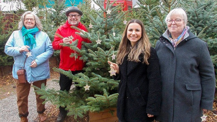 Titelfoto: Auf dem Gänsemarkt in Herford steht ein Weihnachtsbaum für Sternenkinder. Auf dem Foto sind von links: Christiane Menzel, Ulrich Martinschledde und Emel Bilgetekin und Pfarrerin Eva-Maria Schnarre.