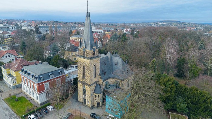 Titelfoto: Luftaufnahme von 2019 der Petrikirche am Wilhelmsplatz 4 in Herford.