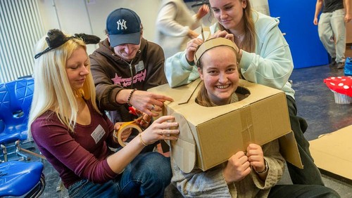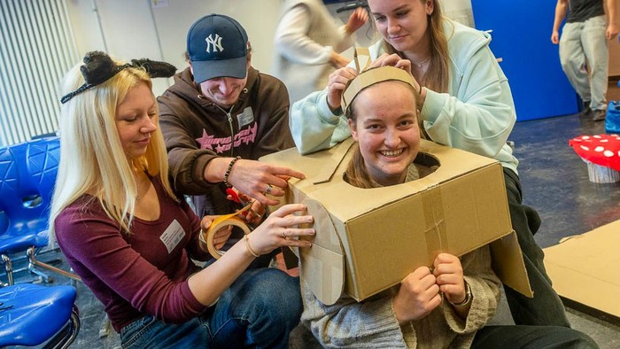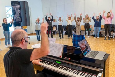 Wie in den anderen zehn Workshops besteht auch hier die Gruppe aus Studierenden des Elisabeth-von-der-Pfalz-Berufskollegs (EVDP) und pädagogischen Fachkräften aus den Kindertagesstätten des Evangelischen Kirchenkreises Herford. „Das Zusammentreffen unserer jungen Menschen in Ausbildung und der Fachkräfte aus der Praxis ist eine Besonderheit dieses Angebots“, sagt Catrin Mawick, Musiklehrerin am EVDP. „Die Begegnungen und der Austausch sind für beide Seiten eine Bereicherung.“
