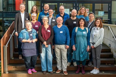 Foto oben: Burkhard Leich (vorn, M.), Catrin Mawick (l. daneben, Berufskolleg), Fachberaterin Claudia Loheide (vorn r.), Schulreferent Christian Rasch (hi. l.) und Lukas Lelgemann vom Berufskolleg (im schwarzen Shirt) mit den Referentinnen und Referenten, die die Workshops angeboten hatten.